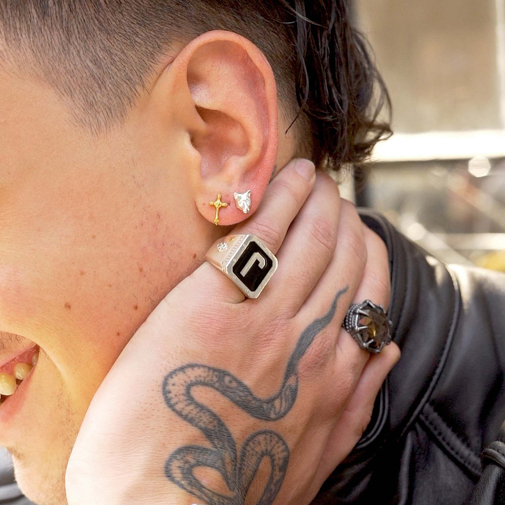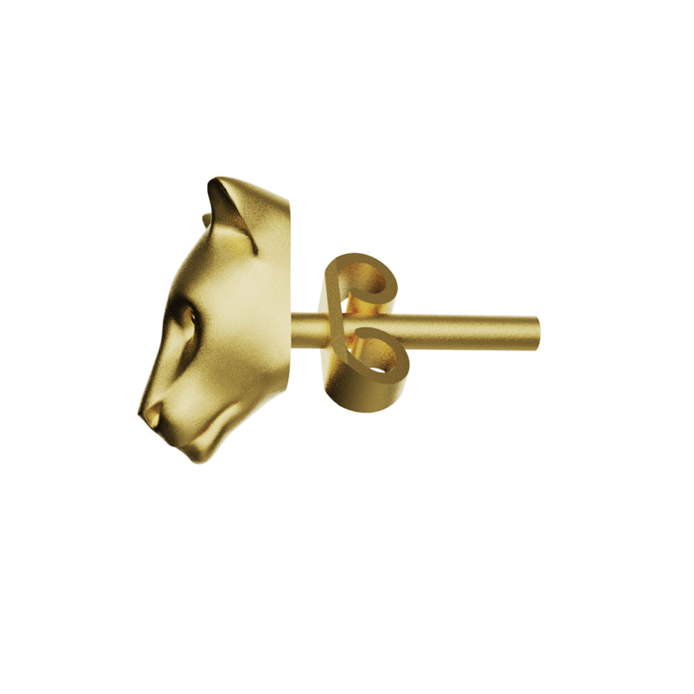 El arete está elaborado con fina plata de ley 925 con forma de jaguar, con acabado en baño de oro.