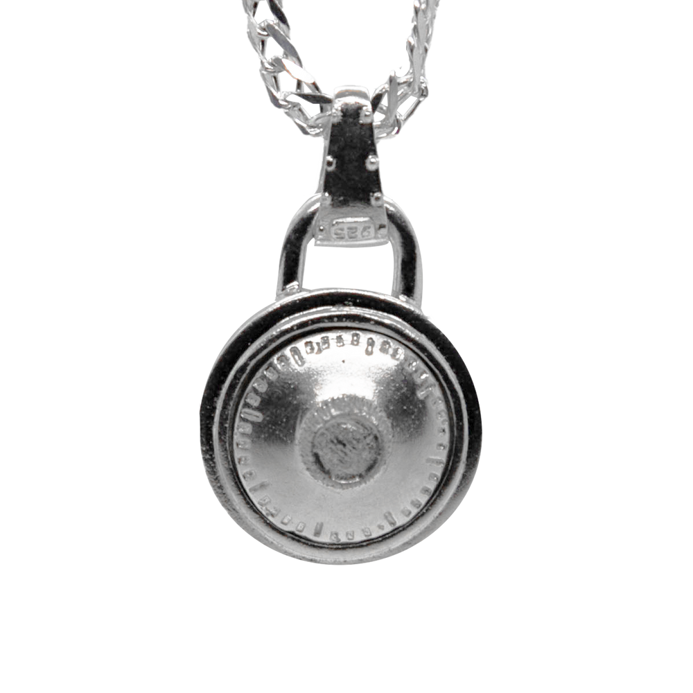 Dije de plata 925 con forma de candado. Esta pieza es interactiva pues gira la parte de en medio. Perfecta para simbolizar tu amor, carácter y tu fortaleza.