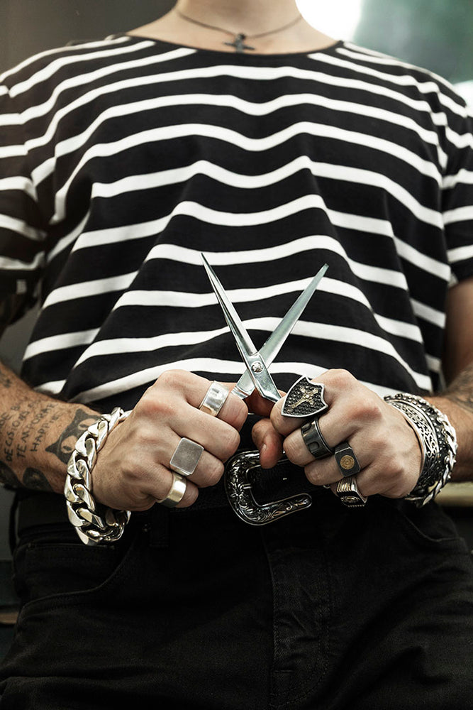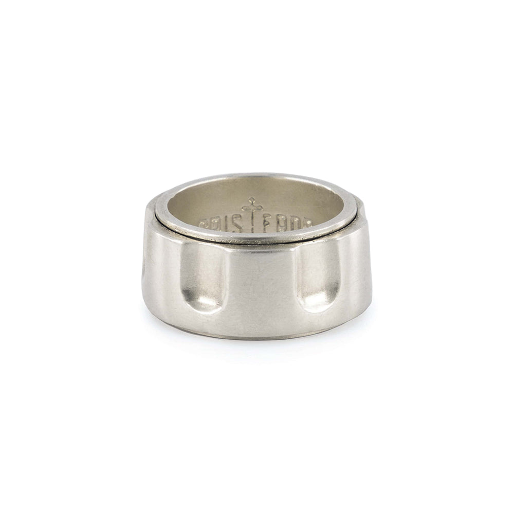 El anillo está elaborado con fina plata de ley 925, contiene el logo de la marca en la parte interior y tiene un acabado barrilado el cual le dá un aspecto brilloso