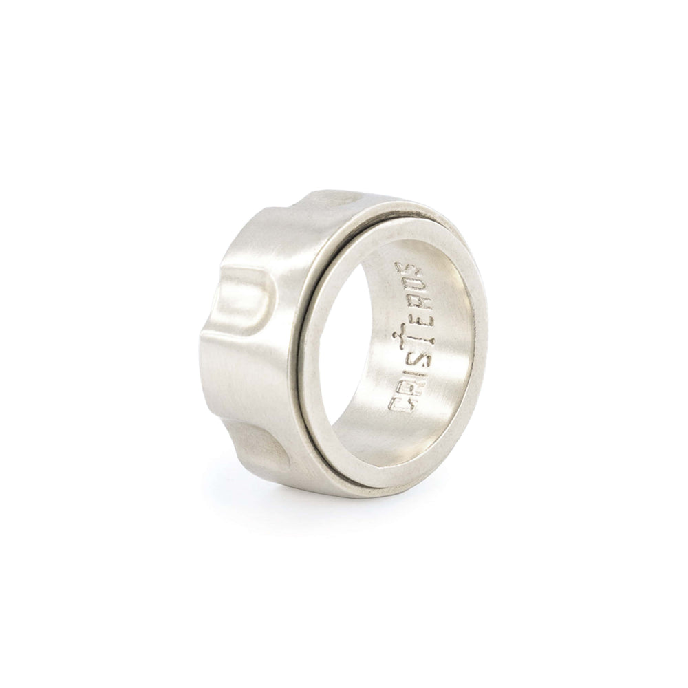 Anillo de plata .925 barrilado, Anillo en forma de revolver el cual hace referencia a un símbolo para levantar la voz y expresar libremente quien eres.