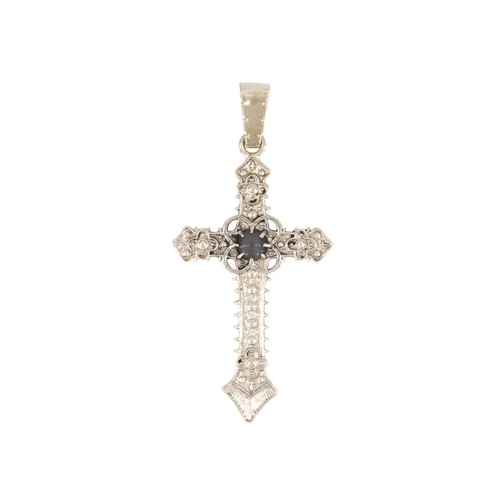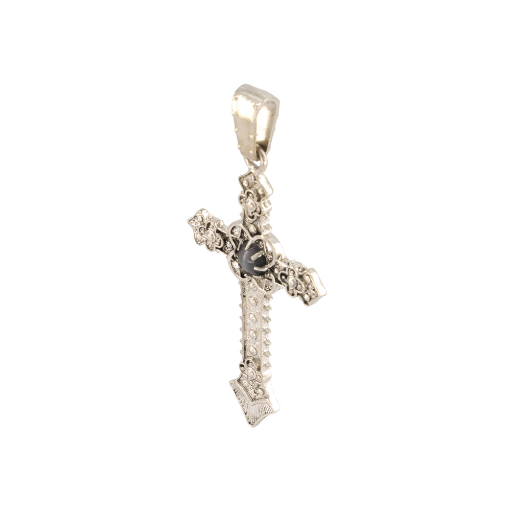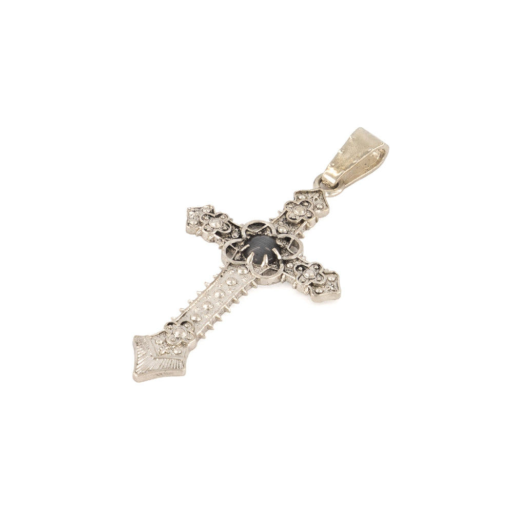 El dije está elaborado con fina plata de ley 925 en forma de cruz la cual lleva encada una de las esquinas el símbolo NaOllin de la marca y en la parte central una piedra ópalo transparente, con un acabado barrilado que le da un aspecto brilloso y de lujo a toda la pieza.INCLUYE CADENA DE PLATA BARBADA DE 60CM