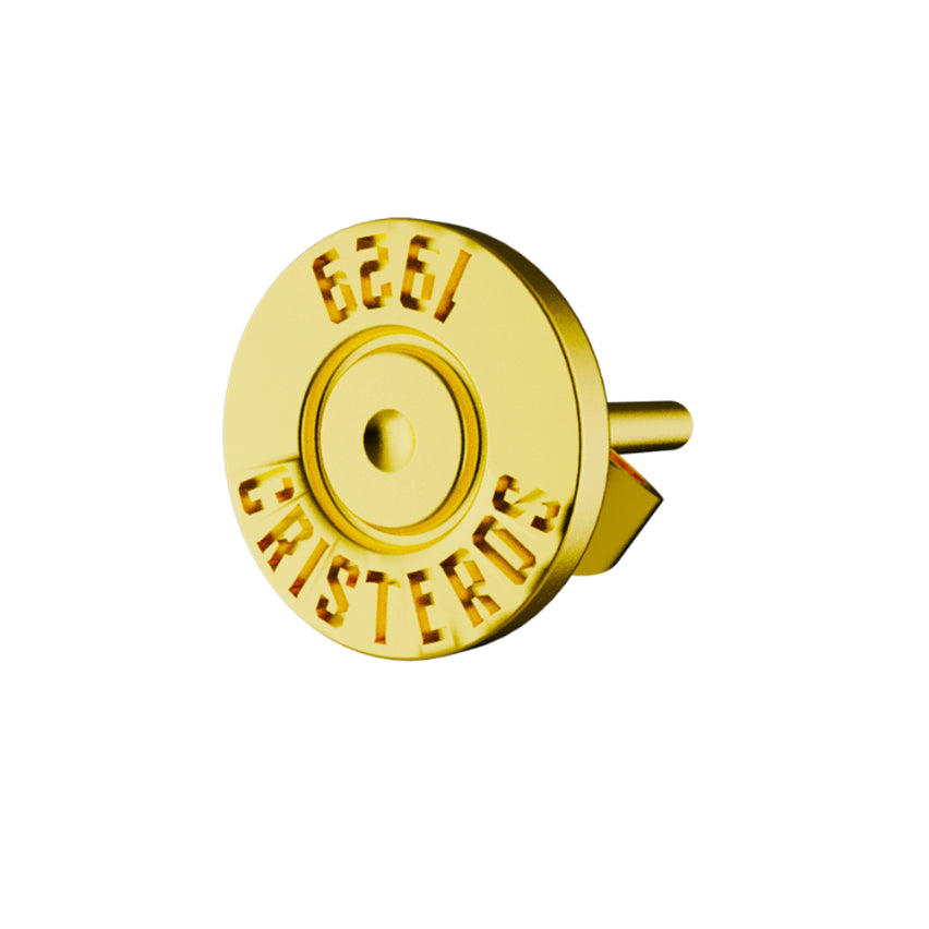 Arete que hace alusión al extremo de una bala. Plata 925 con baño de oro incluye broche tipo mariposa