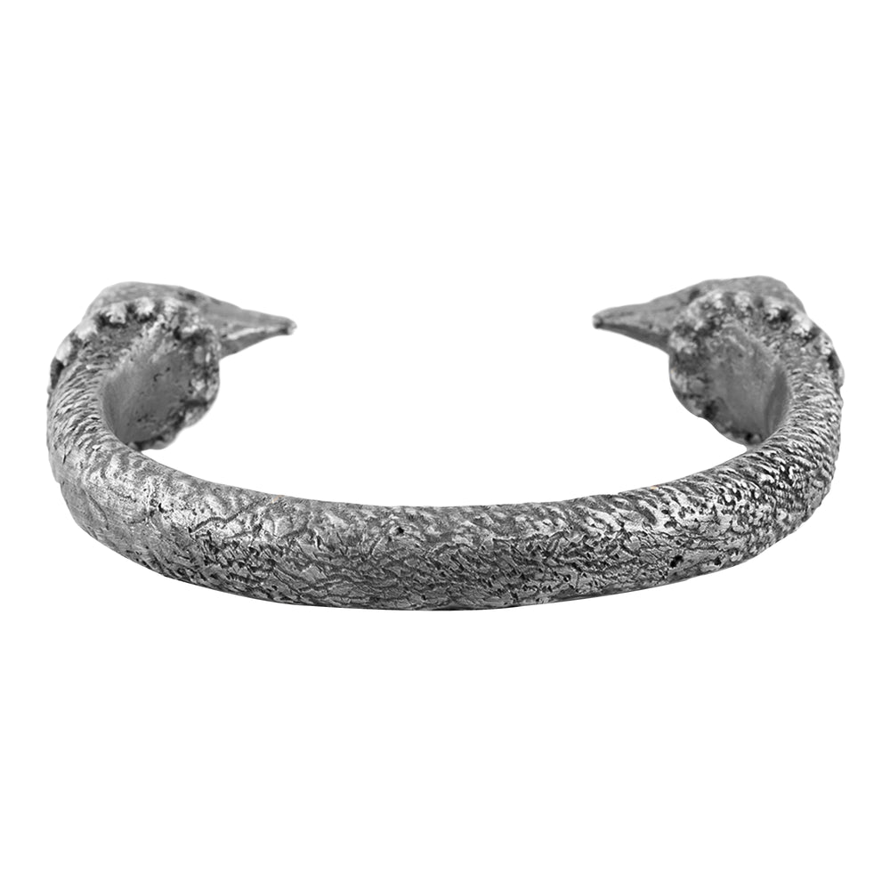 El brazalete está elaborado con fina plata de ley 925 en forma de aguila y con acabado barrilado que le dá un aspecto brilloso.