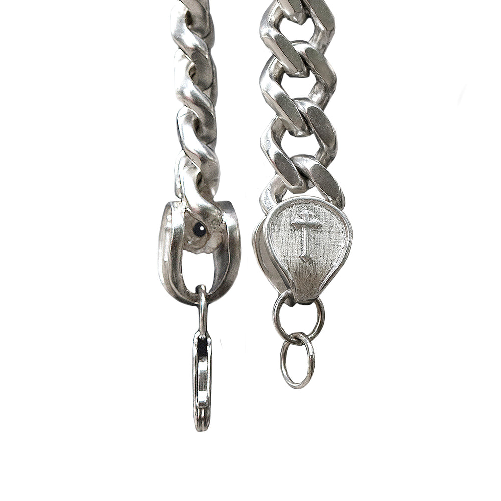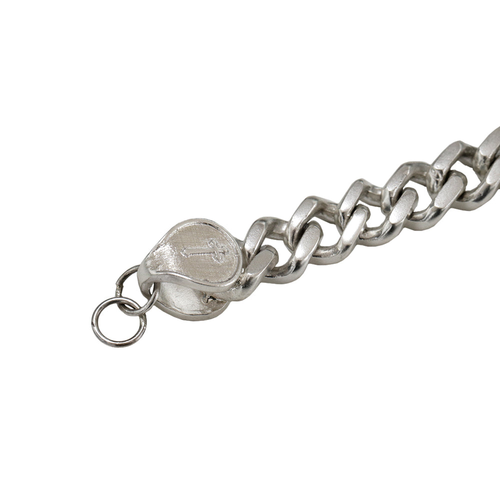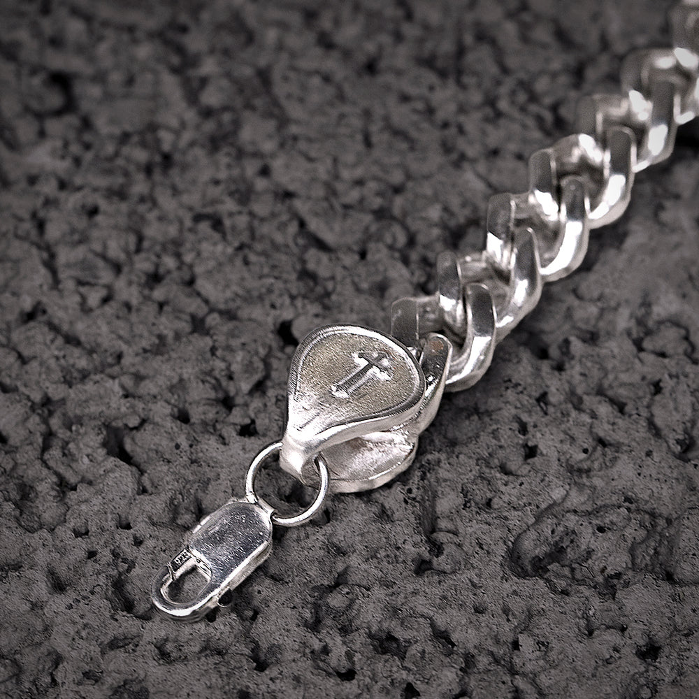 Una pulsera de plata con acabado barrilado que resalta una personalidad de rebeldía y autenticidad. Sin duda un accesorio que reforzará tu estilo.