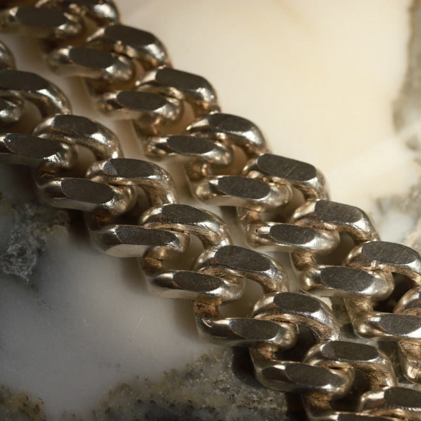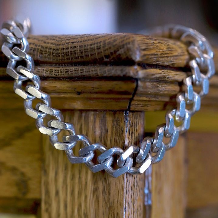 El collar está elaborado con fina plata de ley 925 con un "tejido trenzado" que forma toda la cadena y con un acabado barrilado que le da el aspecto brilloso y de lujo.