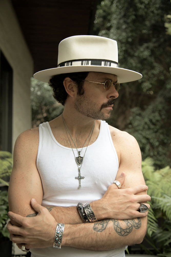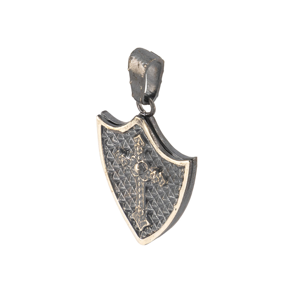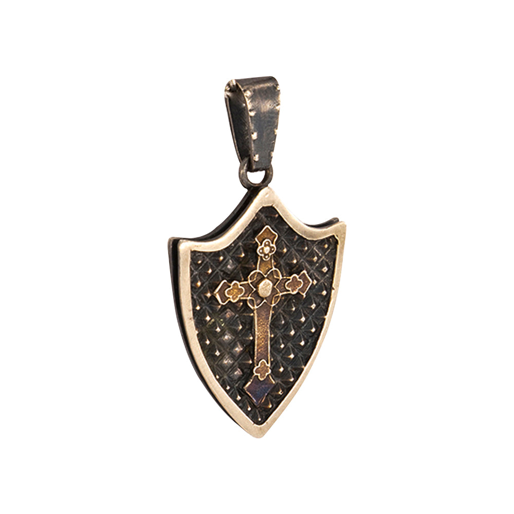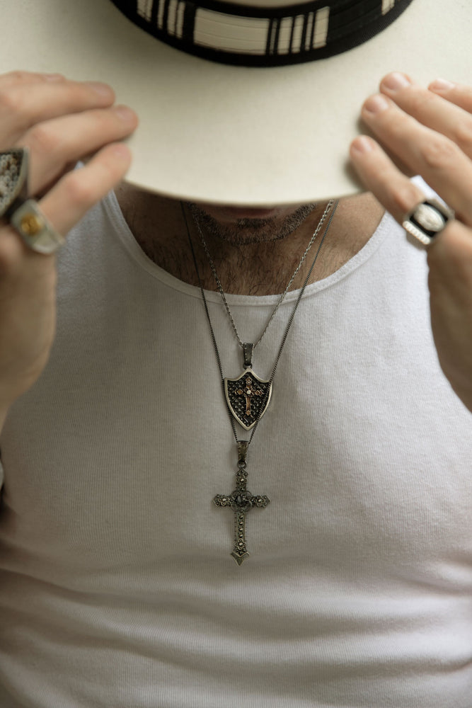 El dije está elaborado con fina plata de ley 925 en forma de escudo con la cruz cristera en la parte del centro y con un acabado pavonado que le da el aspecto clásico y vintage. Incluye cadena de plata barbada de 60 cm