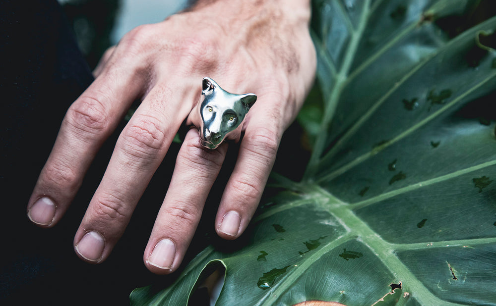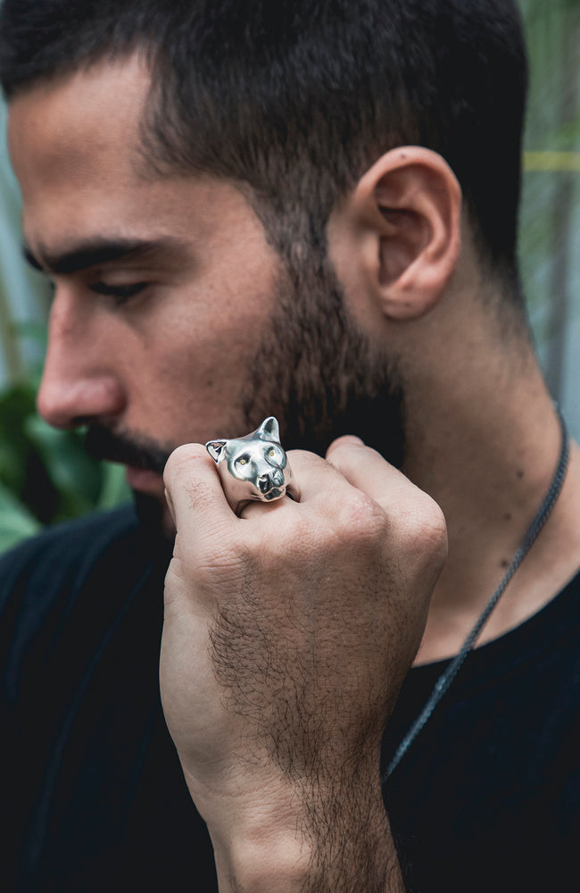 Anillo de plata 925 barrilado con forma de pantera el cual hace referencia a las leyendas de los nahuales. La forma de la pantera es perfecta para contectar con tu lado más mítico.