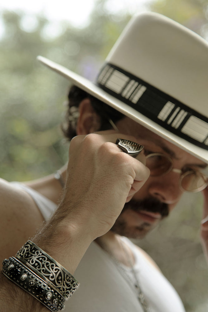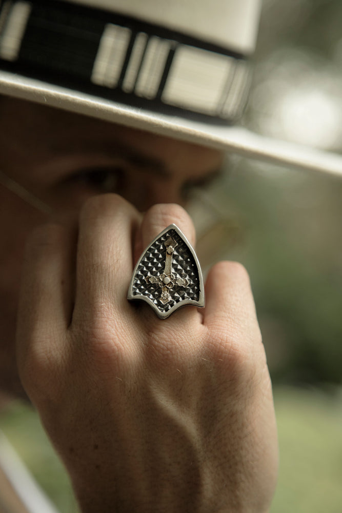 Anillo de plata 925 con forma de escudo de la época y cruz en la parte central, como representación de todos aquellos que levantan la voz. Que mejor manera de rebelarse y expresar tu personalidad que utilizar un anillo con una personalidad tan fuerte como el Victoriano.